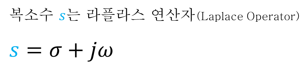 참고로, 라플라스 변환에서는 복소수 s를 라플라스 연산자(Laplace Operator)라고 부르고, 복소수로서 다음과 같이 실수와 허수부로 표현할 수 있다.
