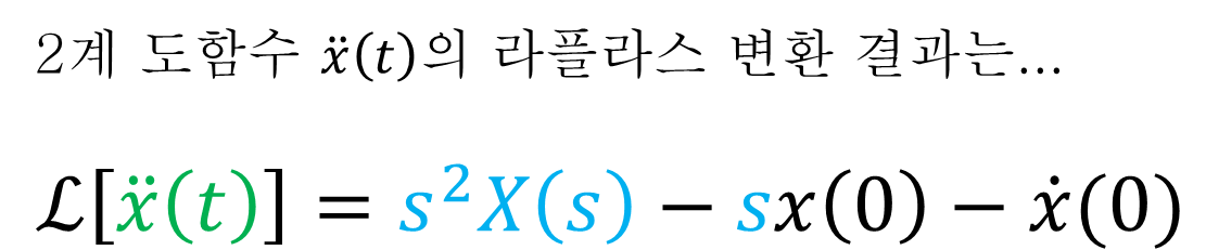 x(t)의 2계 도함수 x''(t)를 라플라스 변환하면 다음 식과 같이 표현할 수 있다.