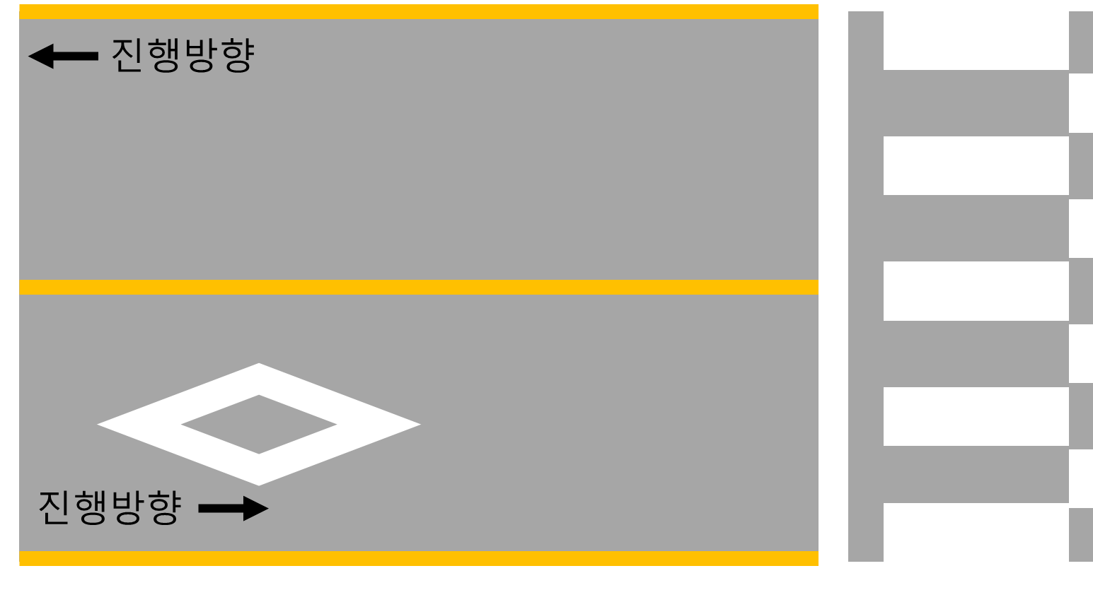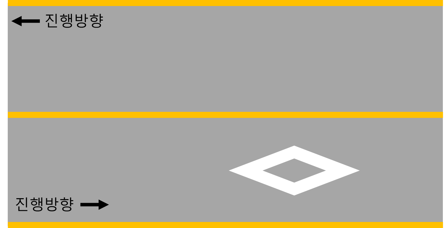 운전을 하다보면, 도로 위에 아래 그림과 같은 다이아몬드(마름모) 모양을 가끔 보게 된다.