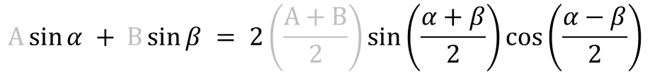 이 상황을 계산식으로 나타내보자. sine파의 더하기는 고등학교때 배운 "삼각함수" 공식을 적용한다.