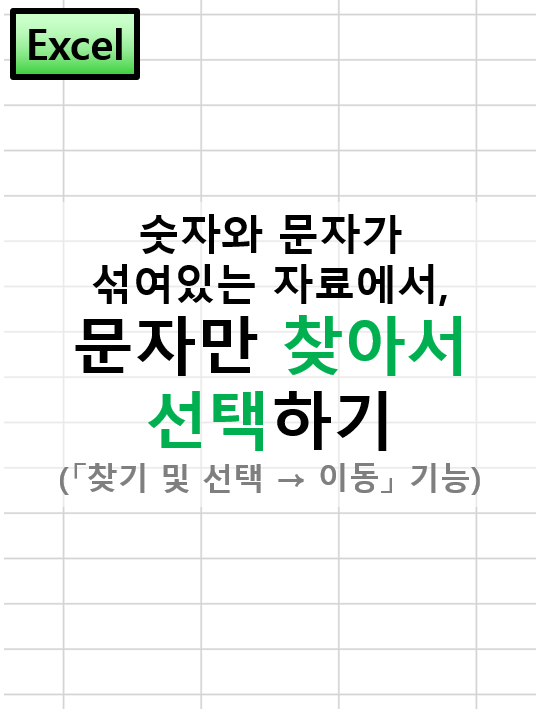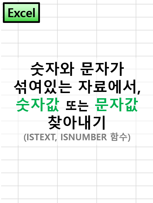 지난 글에서 「찾기 및 선택 → 이동」 기능을 활용하여 "숫자와 문자가 섞인 자료에서 문자만 찾아서 선택하는 방법" 에 대해서 소개한 바 있다. ※ 링크 : https://available-space.tistory.com/90 이번 글에서는 비슷하면서도 조금은 다른 활용법을 소개하려한다. 자료 안에 혼재되어있는 숫자값 또는 문자값을 「ISTEXT / ISNUMBER」 라는 함수를 활용해서 찾아내는 방법을 소개한다. 설명을 위해 가상의 상황을 한번 더 이용해보자. 아래 그림과 같이, 1~10차시 까지의 테스트 결과표가 있다. 결과값을 보면, "숫자와 문자가 섞인 오타" 가 있다. ISTEXT 함수 및 ISNUMBER 함수를 사용해서 오타를 찾아내보자. 1. ISTEXT 함수 ISTEXT 함수는 셀값이 문자..